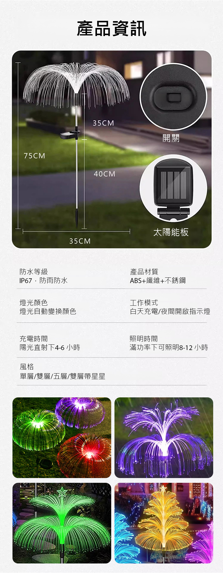 多層水母太陽能景觀燈裝飾草坪燈